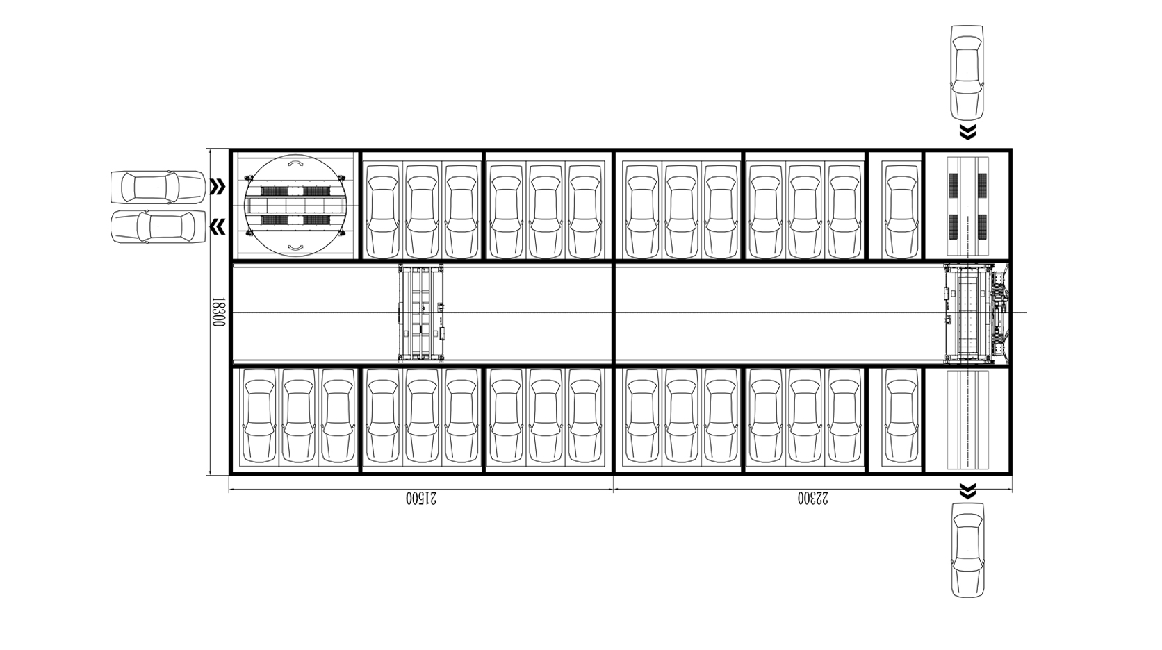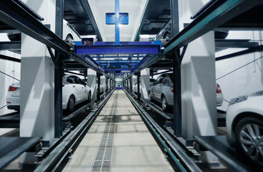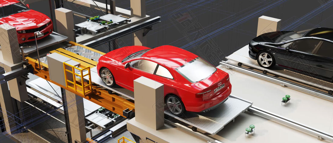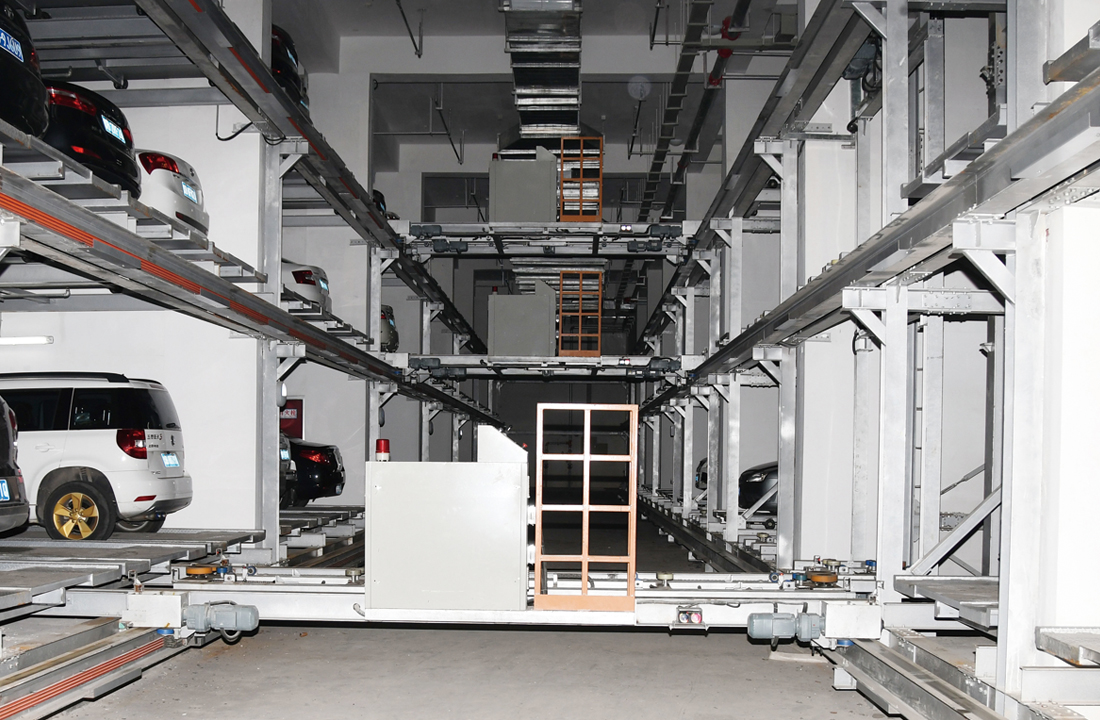 该设备通过固定位置的升降机实现汽车的竖直移动。同一层上,通过横移台车实现汽车的横向移动,通过载车板式智能搬运器实现汽车的纵向移动,实现多层车辆的同时存取。该设备是一种自动化、大型仓储化立体车库,容车密度大,存取车快捷,使用范围广,可根据场地不同,选择不同类型的升降机及出入口装置,例如双板交换式升降机、无机房贯通式升降机、巷道中置升降机、巷道端置升降机等。