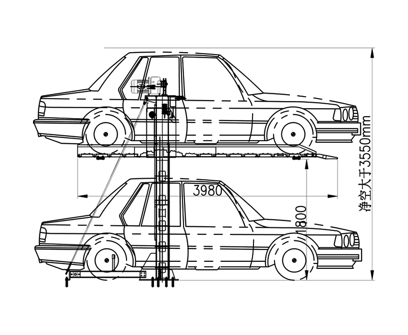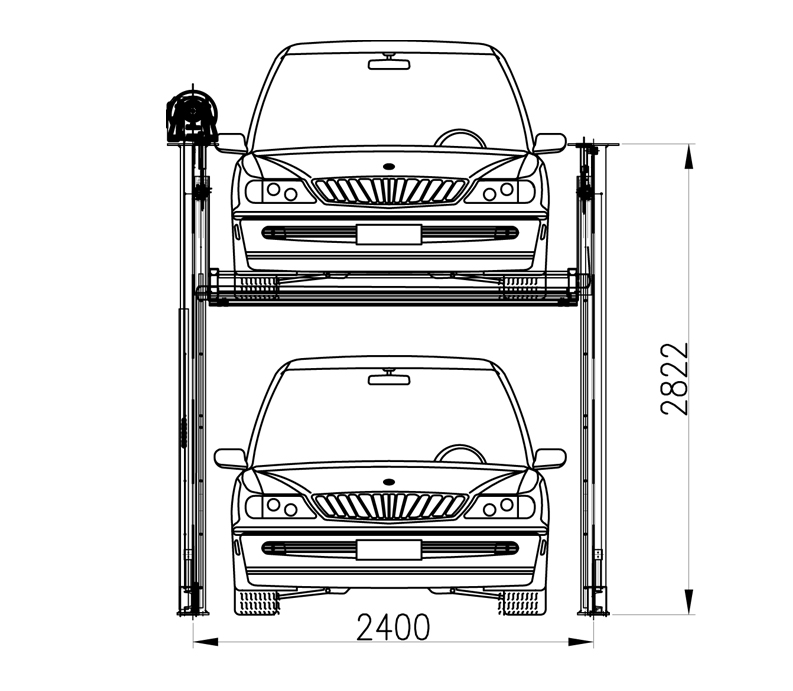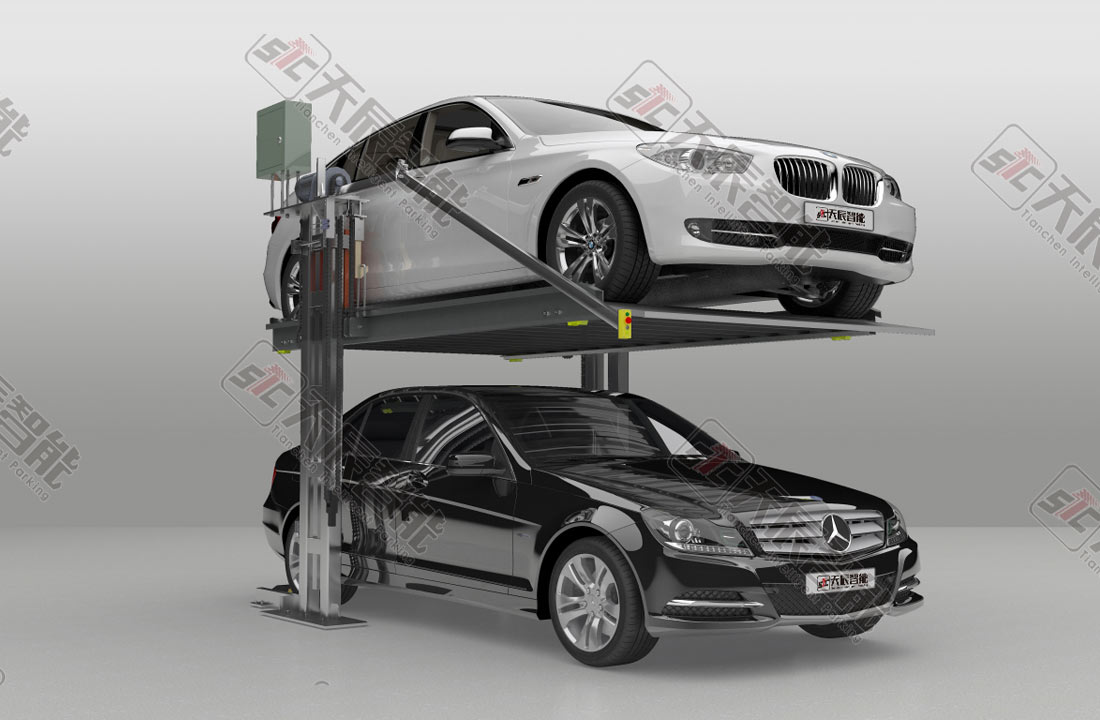 该设备共设有两个立柱,分为上下两层通过电机链条传动进行存取车,下层无载车板,如要存取上车位的车辆,需先将下车位的车辆移开。车位只做升降运动,不做横移运动;具有方便耐用、成本价格低、维护成本低等优点。